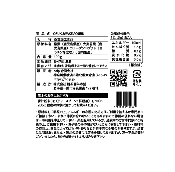 無添加青汁OFUKUWAKE青汁オンラインショップ。3つのシンプルな素材は、健康美容効果が高いうえ、毎日飲み続けられる安心厳選素材のみ。健康な身体とつやつやのお肌は、幸せのベースになります。幸せのお福分けになりますよう、願いをこめてお届けします。鹿児島県の信頼なる農園の素材を使用してます。良質な桑葉を年間契約しております。